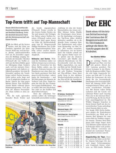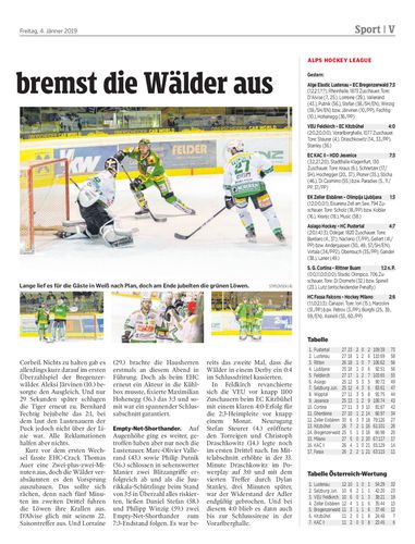 Dank eines 4:0 im letzten Drittel bezwingt der Lustenau den EC Bregernzerwald mit 7:3. VEU Feldkirch gelingt die Heim-Revanche gegen den EC Kitzbühel.