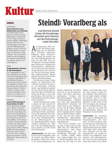 Laut Bettina Steindl haben die Vorarlberger Bewerber gute Chancen auf den Kulturhauptstadt-Titel 2024.