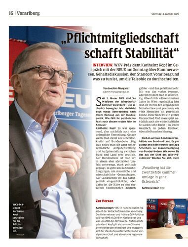 Interview. WKV-Präsident Karlheinz Kopf im Gespräch mit der NEUE am Sonntag über Kammerwesen, Gehaltsdiskussion, den Standort Vorarlberg und was zu tun ist, um die Talsohle zu durchschreiten.