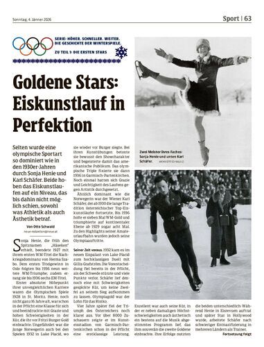 Selten wurde eine olympische Sportart so dominiert wie in den 1930er-Jahren durch Sonja Henie und Karl Schäfer. Beide hoben das Eiskunstlaufen auf ein Niveau, das bis dahin nicht möglich schien, sowohl was Athletik als auch Ästhetik betraf.