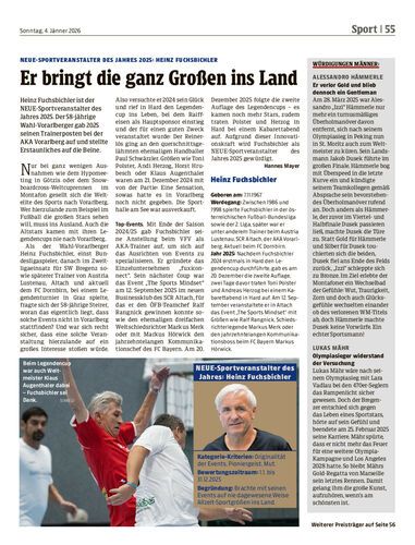Heinz Fuchsbichler ist der NEUE-Sportveranstalter des Jahres 2025. Der 58-jährige Wahl-Vorarlberger gab 2025 seinen Trainerposten bei der AKA Vorarlberg auf und stellte Erstaunliches auf die Beine.