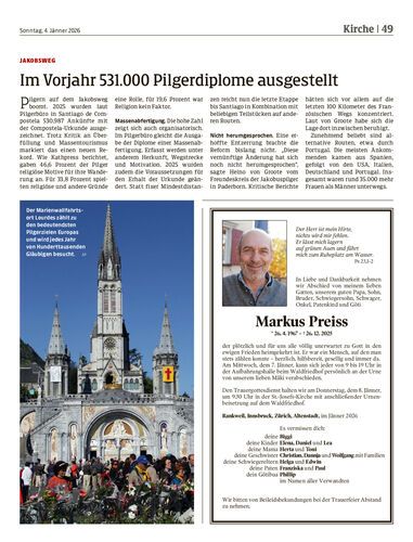 Im Vorjahr 531.000 Pilgerdiplome ausgestellt