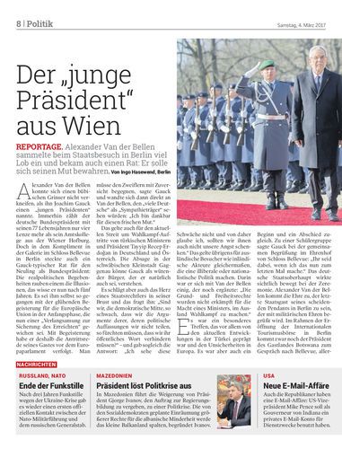 REPORTAGE. Alexander Van der Bellen sammelte beim Staatsbesuch in Berlin viel Lob ein und bekam auch einen Rat: Er solle sich seinen Mut bewahren. Von Ingo Hasewend, Berlin