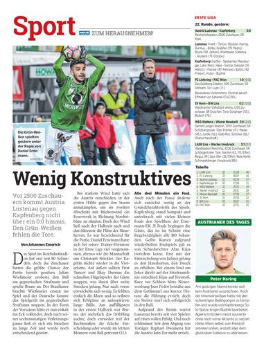 Vor 2500 Zuschauern kommt Austria Lustenau gegen Kapfenberg nicht über ein 0:0 hinaus. Den Grün-Weißen fehlen die Tore.