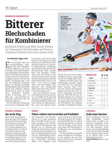 Bernhard Gruber und Willi Denifl fehlten im Teamsprint 0,5 Sekunden auf Bronze. Johannes Rydzek holte sein viertes Gold.