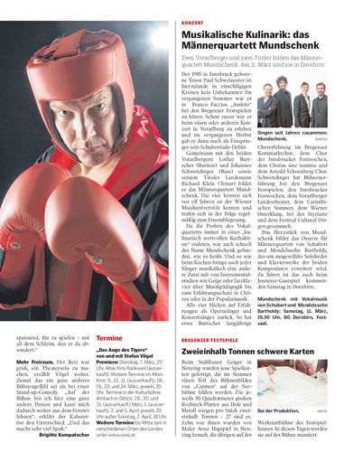 Zwei Vorarlberger und zwei Tiroler bilden das Männerquartett Mundschenk. Am 11. März sind sie in Dornbirn.