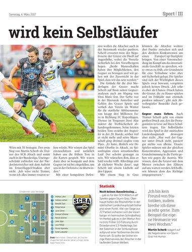 Altach gastiert heute (16 Uhr) bei den im Frühjahr sieglosen Steirern. Der Druck liegt bei Sturm, dennoch warnt SCR-Trainer Martin Scherb vor dem Gegner.