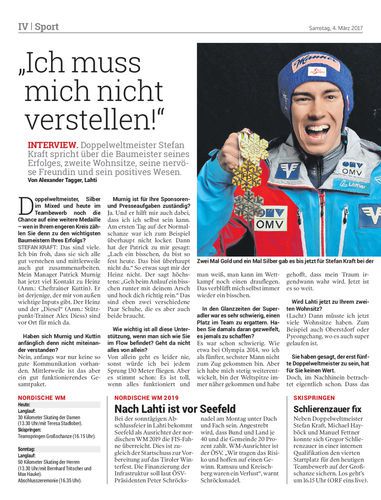 Doppelweltmeister Stefan Kraft spricht über die Baumeister seines Erfolges, zweite Wohnsitze, seine nervöse Freundin und sein positives Wesen. Von Alexander Tagger, Lahti