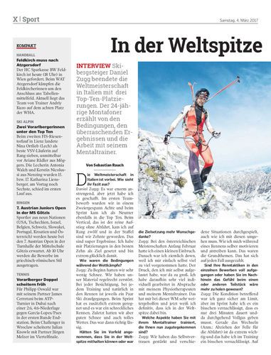 Interview Skibergsteiger Daniel Zugg beendete die Weltmeisterschaft in Italien mit drei Top-Ten-Platzierungen. Der 24-jährige Montafoner erzählt von den Bedingungen, den überraschenden Ergebnissen und die Arbeit mit seinem Mentaltrainer.