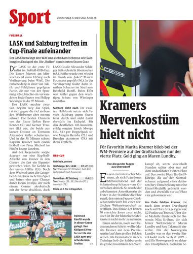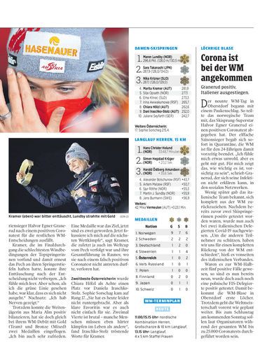 Für Favoritin Marita Kramer blieb bei der WM-Premiere auf der Großschanze nur der vierte Platz. Gold ging an Maren Lundby.