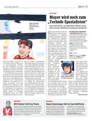 Lob und Kritik von Matthias Mayer nach dem ersten Abfahrtstraining in Saalbach.