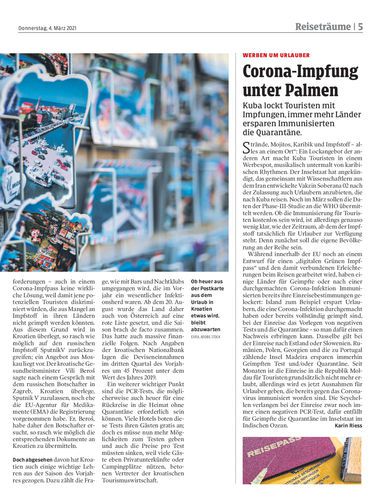 Kuba lockt Touristen mit Impfungen, immer mehr Länder ersparen Immunisierten die Quarantäne.