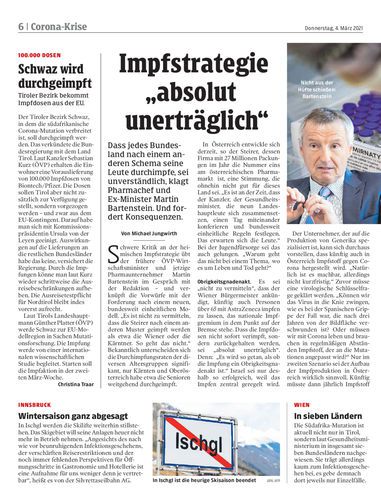 Dass jedes Bundesland nach einem anderen Schema seine Leute durchimpfe, sei unverständlich, klagt Pharmachef und Ex-Minister Martin Bartenstein. Und fordert Konsequenzen.