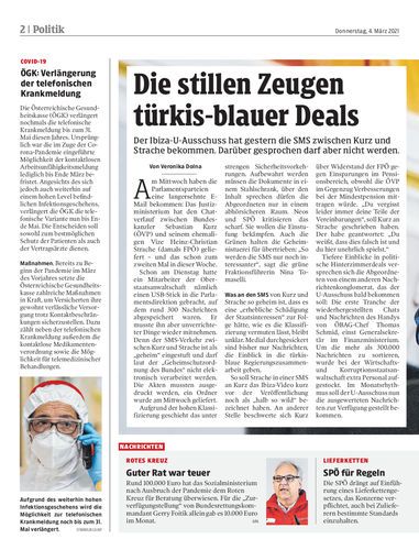 Der Ibiza-U-Ausschuss hat gestern die SMS zwischen Kurz und Strache bekommen. Darüber gesprochen darf aber nicht werden.