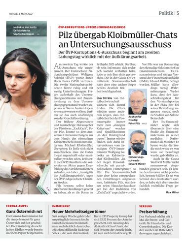 Pilz übergab Kloibmüller-Chats an Untersuchungsausschuss