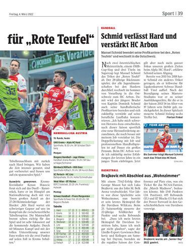 Schmid verlässt Hard und verstärkt HC Arbon