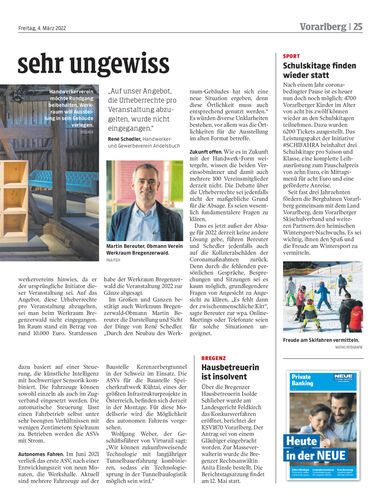 Wegen Auffassungsunterschieden zwischen Handwerkerverein Andelsbuch und Werkraum Bregenzerwald wurde die für Oktober geplante Handwerksausstellung abgesagt.