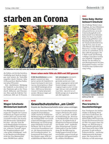 Herz-Kreislauf-Erkrankungen und Krebs waren auch im Vorjahr die häufigsten Todesursachen. Durch Covid gab es jedoch mehr Sterbe-fälle als noch vor der Pandemie.