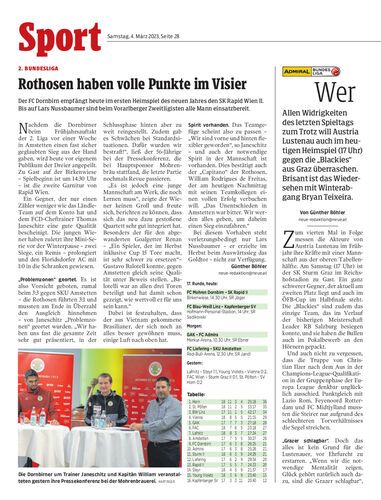 Allen Widrigkeiten des letzten Spieltags zum Trotz will Austria Lustenau auch im heutigen Heimspiel (17 Uhr) gegen die „Blackies“ aus Graz überraschen. Brisant ist das Wiedersehen mit Winterabgang Bryan Teixeira.