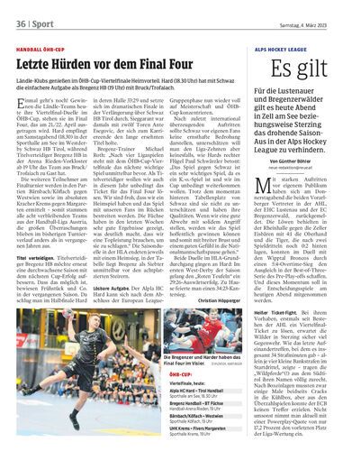 Ländle-Klubs genießen im ÖHB-Cup-Viertelfinale Heimvorteil. Hard (18.30 Uhr) hat mit Schwaz die einfachere Aufgabe als Bregenz HB (19 Uhr) mit Bruck/Trofaiach.