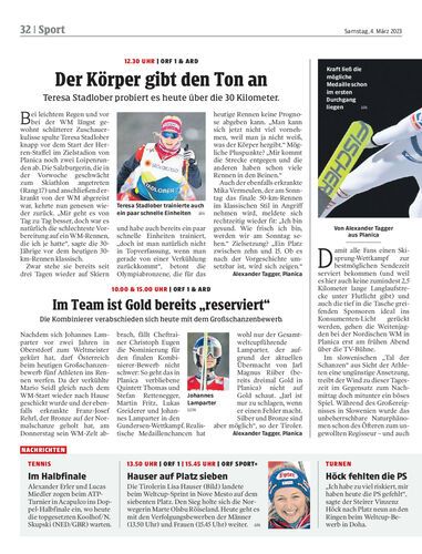 Teresa Stadlober probiert es heute über die 30 Kilometer.