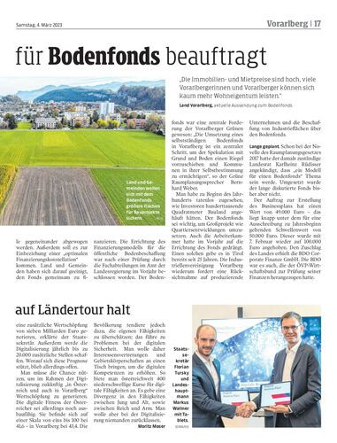 Das Land plant zur Sicherung von Bauland die Einrichtung eines Bodenfonds. Ein externes Unternehmen soll hierfür nun einen Businessplan erstellen.