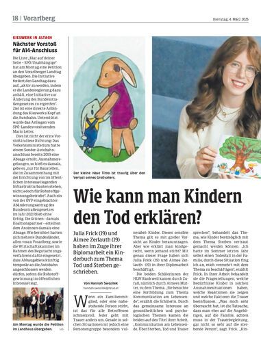 Julia Frick (19) und Aimee Zerlauth (19) haben im Zuge ihrer Diplomarbeit ein Kinderbuch zum Thema Tod und Sterben geschrieben.