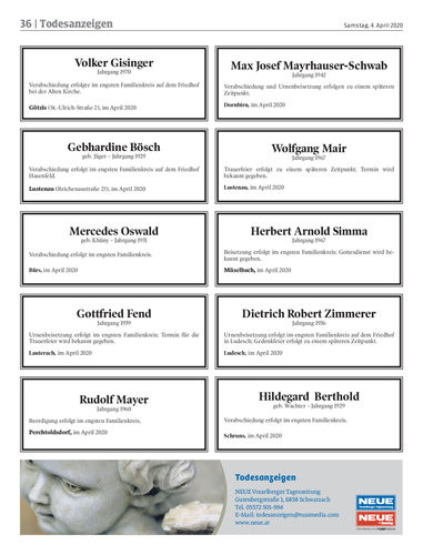 Aufgehoben. Die Quarantäne für die Vorarlberger Arlbergregion und Ortsteile von Nenzing ist seit Mitternacht aufgehoben. Für etwa 1000 Saisonarbeiter in Lech gilt allerdings ein strenges Abreisemanagement. Seiten 12/13 hartinger