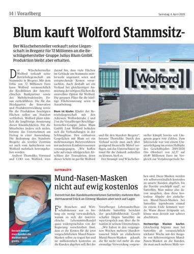 Der Wäschehersteller verkauft seine Liegenschaft in Bregenz für 72 Millionen an die Beschlägehersteller-Gruppe Julius Blum GmbH. Produktion bleibt aber erhalten.