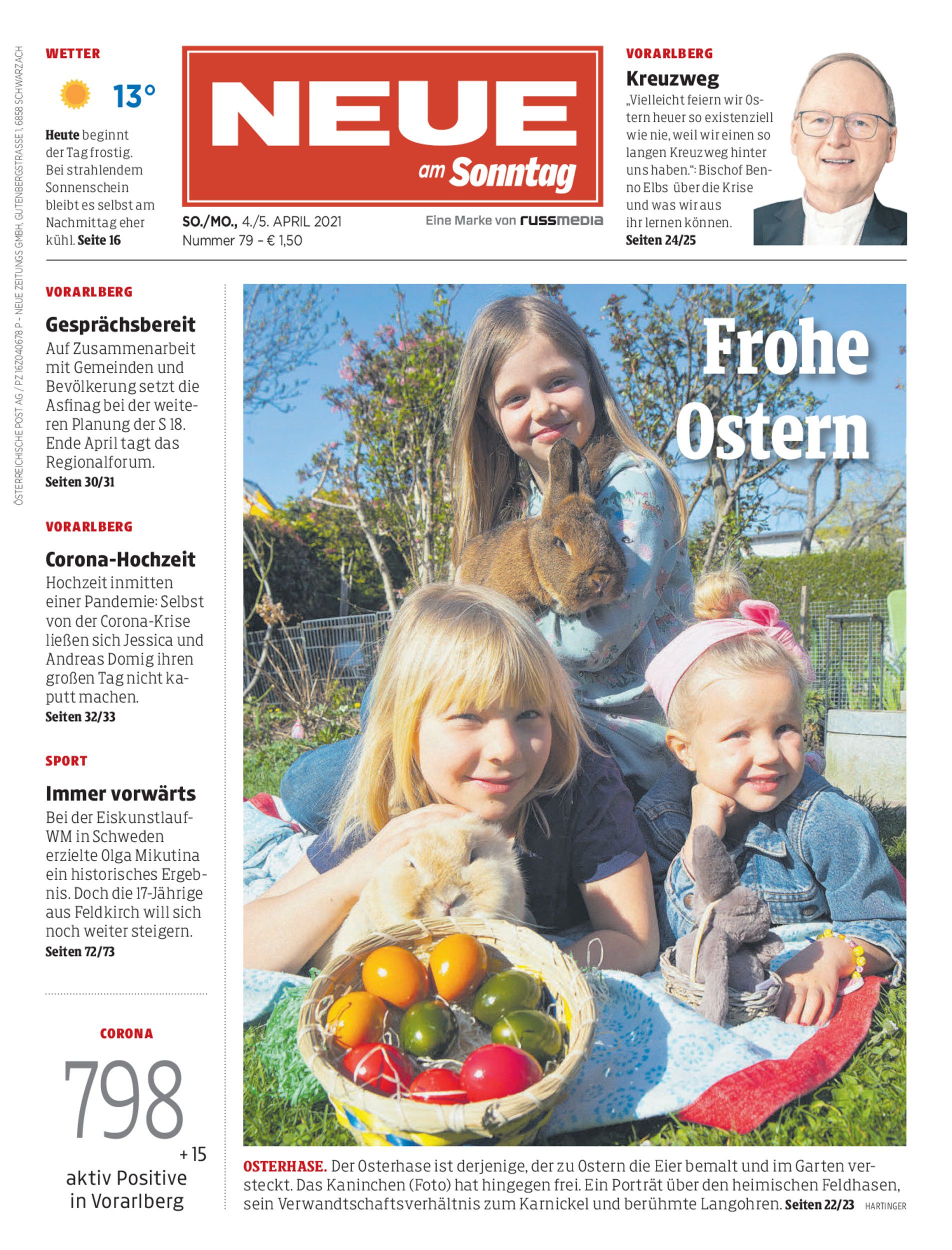 Osterhase. Der Osterhase ist derjenige, der zu Ostern die Eier bemalt und im Garten versteckt. Das Kaninchen (Foto) hat hingegen frei. Ein Porträt über den heimischen Feldhasen, sein Verwandtschaftsverhältnis zum Karnickel und berühmte Langohren. Seiten 22/23 HarTinger