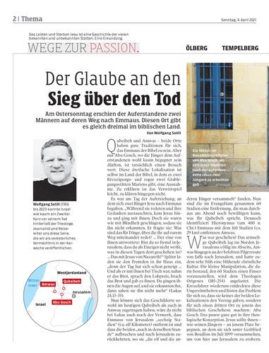 Am Ostersonntag erschien der Auferstandene zwei Männern auf deren Weg nach Emmaus. Diesen Ort gibt es gleich dreimal im biblischen Land. Von Wolfgang Sotill