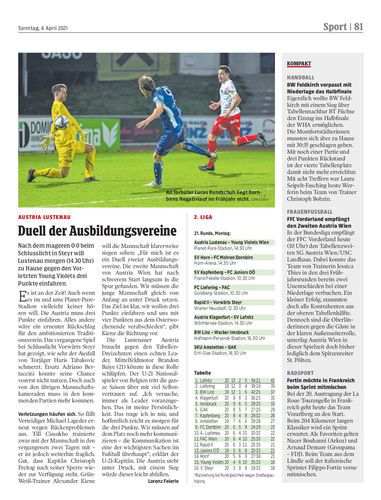 Nach dem mageren 0:0 beim Schlusslicht in Steyr will Lustenau morgen (14.30 Uhr) zu Hause gegen den Vorletzten Young Violets drei Punkte einfahren.