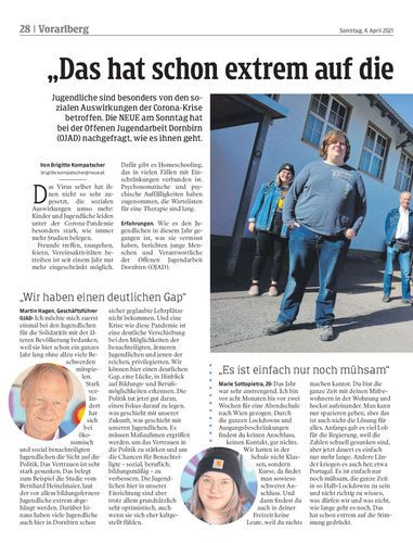 Jugendliche sind besonders von den sozialen Auswirkungen der Corona-Krise betroffen. Die NEUE am Sonntag hat bei der Offenen Jugendarbeit Dornbirn (OJAD) nachgefragt, wie es ihnen geht.