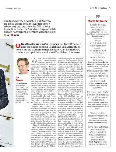 Handynachrichten zwischen ÖVP-Spitzen, die diese Woche bekannt wurden, lösten Wirbel aus und brachten die ÖVP in Nöte. Es stellt sich aber die Grundsatzfrage, ob solch private Nachrichten öffentlich werden sollen.
