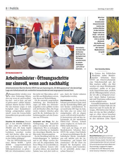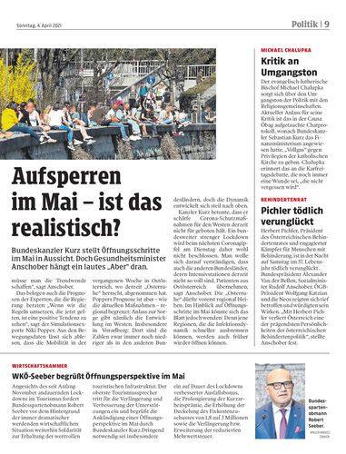 Bundeskanzler Kurz stellt Öffnungsschritte im Mai in Aussicht. Doch Gesundheitsminister Anschober hängt ein lautes „Aber“ dran.