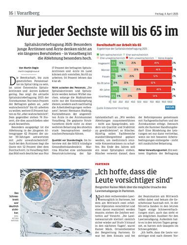 Spitalsärztebefragung 2025: Besonders junge Ärztinnen und Ärzte denken nicht an ein längeres Berufsleben – in Vorarlberg ist die Ablehnung besonders hoch.