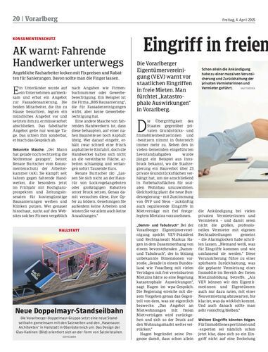 Die Vorarlberger Eigentümervereinigung (VEV) warnt vor staatlichen Eingriffen in freie Mieten. Man fürchtet „katastrophale Auswirkungen“ in Vorarlberg.