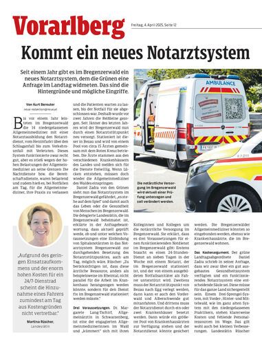 Seit einem Jahr gibt es im Bregenzerwald ein neues Notarztsystem, dem die Grünen eine Anfrage im Landtag widmeten. Das sind die Hintergründe und mögliche Eingriffe.
