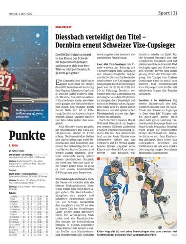 Diessbach verteidigt den Titel – Dornbirn erneut Schweizer Vize-Cupsieger