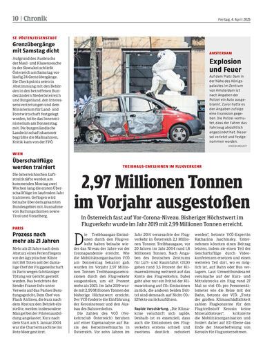 In Österreich fast auf Vor-Corona-Niveau. Bisheriger Höchstwert im Flugverkehr wurde im Jahr 2019 mit 2,99 Millionen Tonnen erreicht.