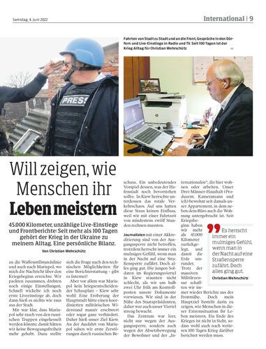 45.000 Kilometer, unzählige Live-Einstiege und Frontberichte: Seit mehr als 100 Tagen gehört der Krieg in der Ukraine zu meinem Alltag. Eine persönliche Bilanz. Von Christian Wehrschütz
