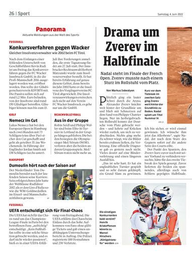 Nadal trifft im Finale der French Open auf Ruud. Zverev musste nach Sturz im Rollstuhl vom Platz.