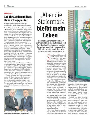Hermann Schützenhöfer hört schweren Herzens auf, im Juli soll Christopher Drexler zum Landeshauptmann gekürt werden. Die SPÖ hält an der Koalition fest. Von Thomas Rossacher und Wilfried Rombold