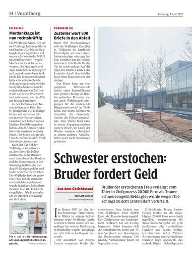 Bruder der erstochenen Frau verlangt vom Täter in Zivilprozess 20.000 Euro als Trauerschmerzengeld. Beklagter wurde wegen Totschlags zu acht Jahren Haft verurteilt.