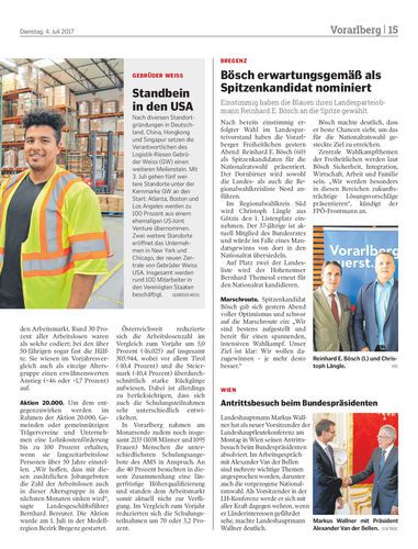 Einstimmig haben die Blauen ihren Landesparteiobmann Reinhard E. Bösch an die Spitze gewählt.