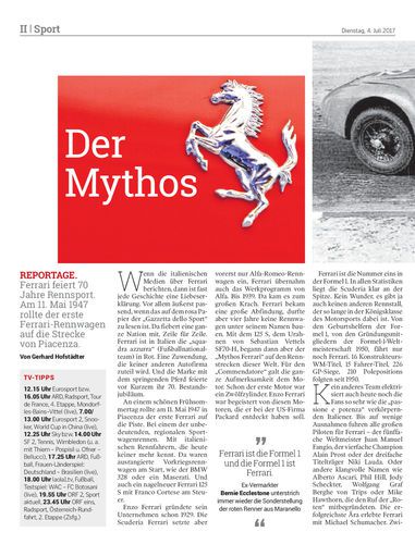 REPORTAGE. Ferrari feiert 70 Jahre Rennsport. Am 11. Mai 1947 rollte der erste Ferrari-Rennwagen auf die Strecke von Piacenza. Von Gerhard Hofstädter