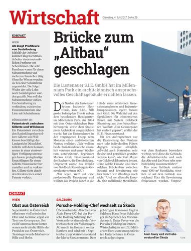 Die Lustenauer S.I.E. GmbH hat im Millennium Park ein architektonisch anspruchsvolles Geschäftsgebäude errichten lassen.
