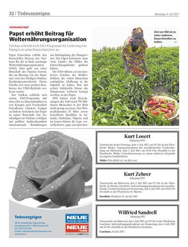 Kirche erhöht finanziellen Beitrag für die FAO.