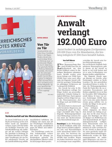 Jurist fordert in anhängigem Zivilprozess 135.000 Euro von Ex-Mandanten, die bislang lediglich 57.000 Euro bezahlt haben.