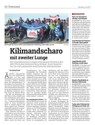 Mit transplantierten Lungen bezwangen Patienten des AKH Wien den höchsten Berg Afrikas. Ärzte begleiteten sie und sammelten medizinische Informationen.
